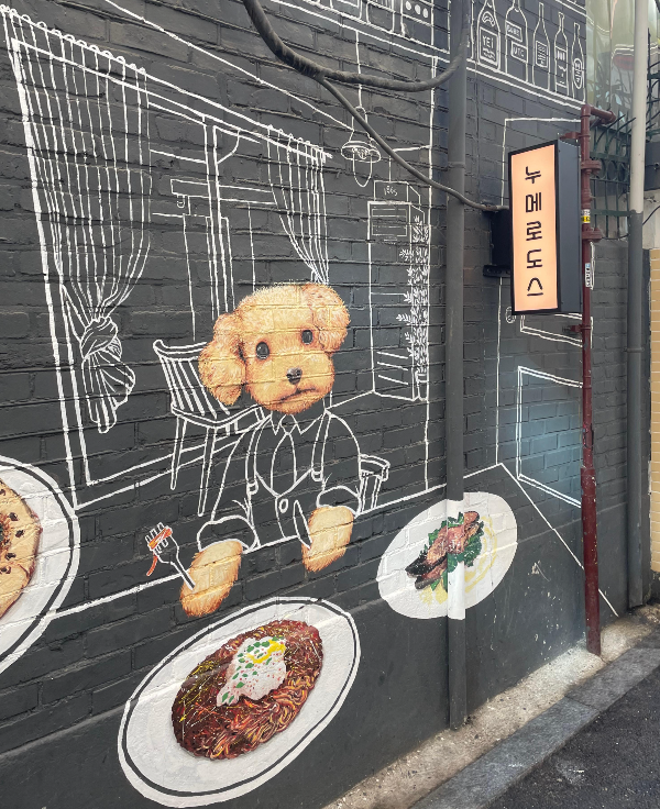 입구부터 감성이 낭낭하죠? 노란색 타일벽이 참 예쁜 누메로도스 입구입니다.