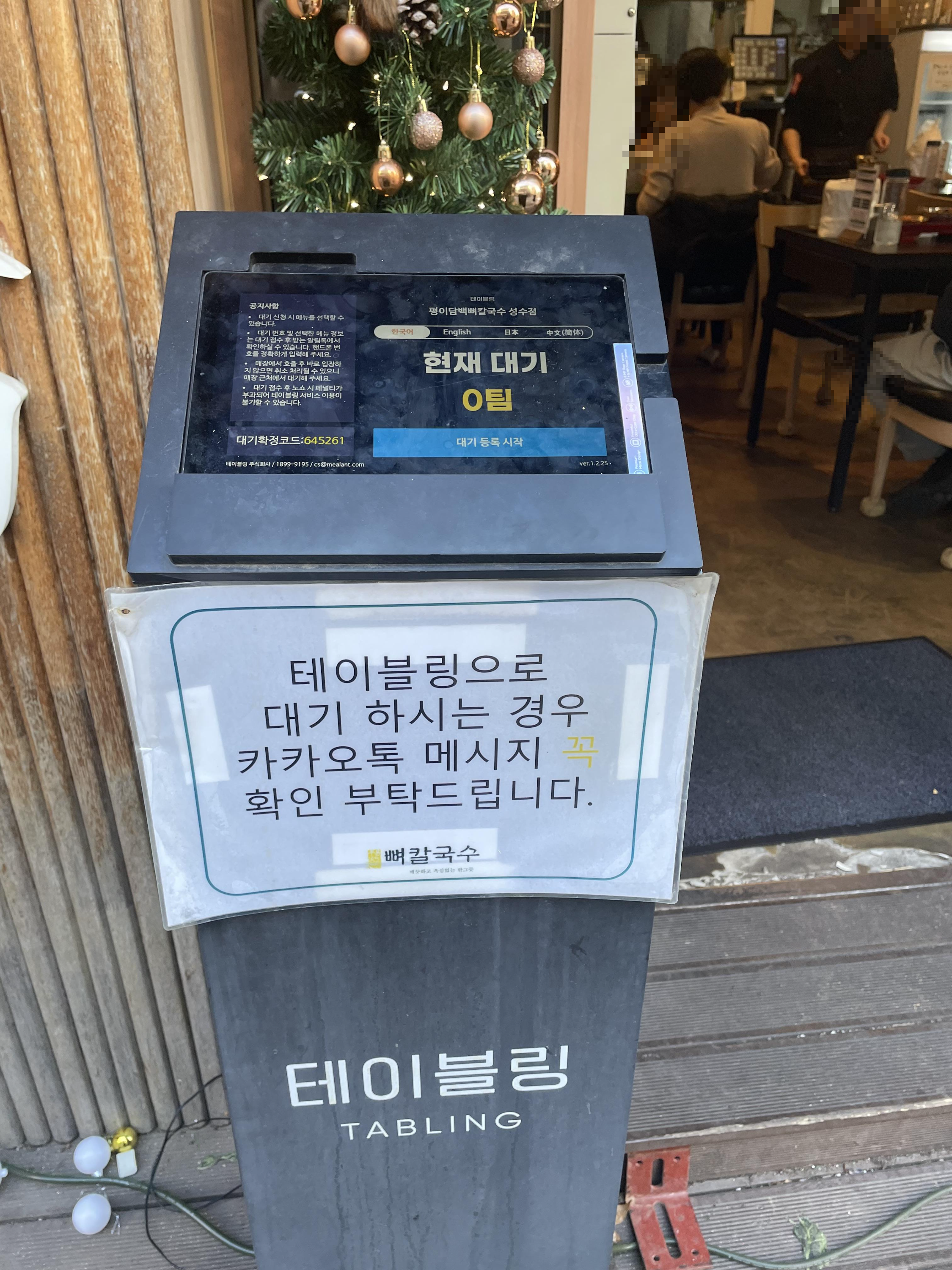 평이담백뼈칼국수 성수점은 점심시간에 가면 만석인 경우가 많아서 웨이팅을 해야 한답니다.ㅠㅠ