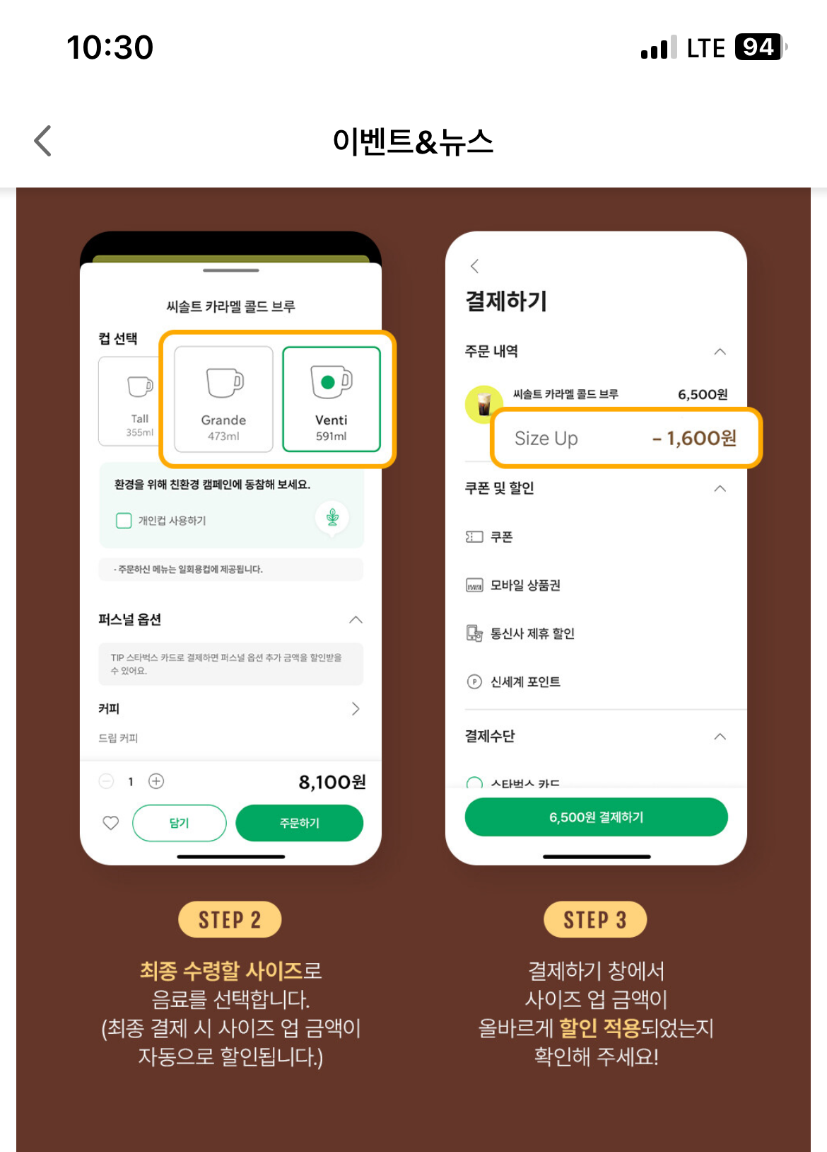 스타벅스 콜드브루 사이즈업 사이렌오더 방법