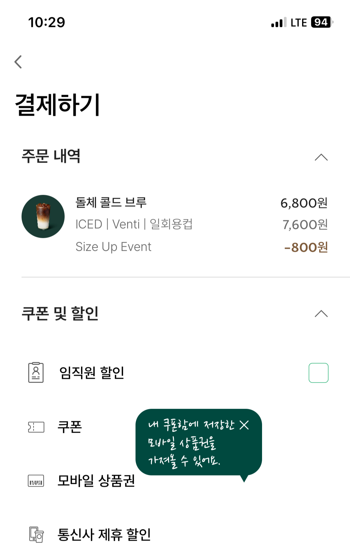 어제 4/29 부터 스타벅스에서 콜드브루 음료를 구매하면