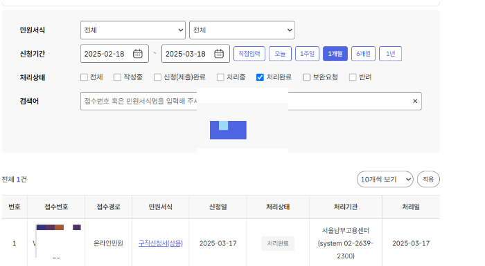 **이직확인서 처리 확인 방법