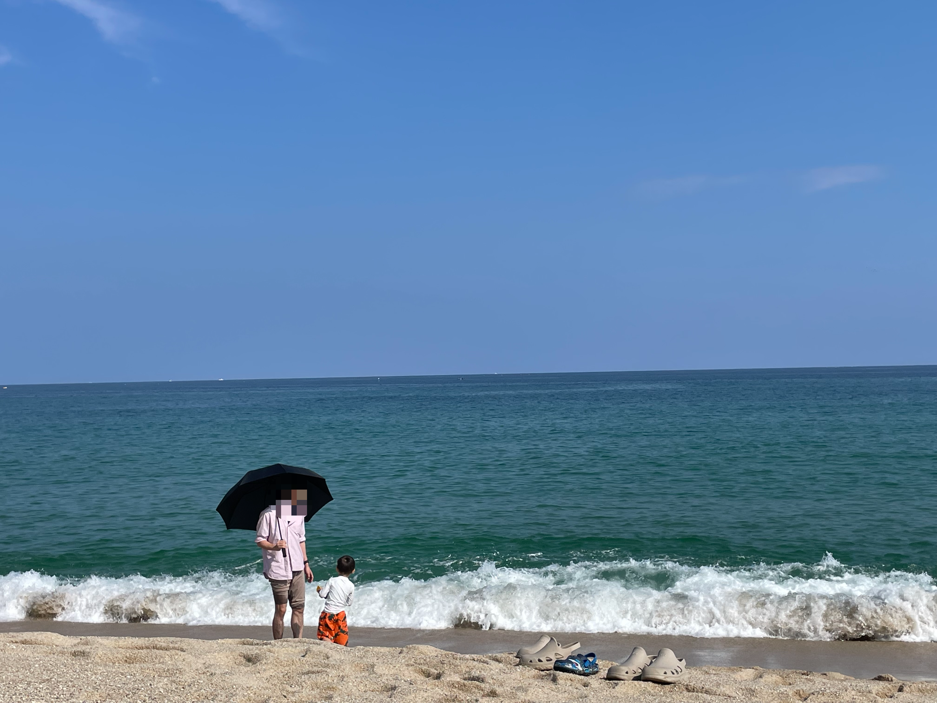 동해는 동해인가봐요~ 파도가 좀 있더라구요. 덕분에 아이는 신나게 파도 피하기 놀이 했답니다. ㅎㅎ