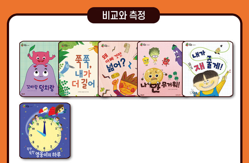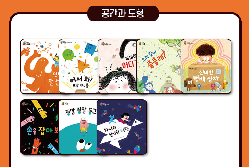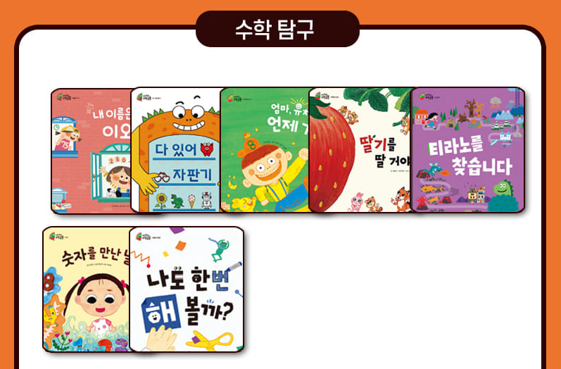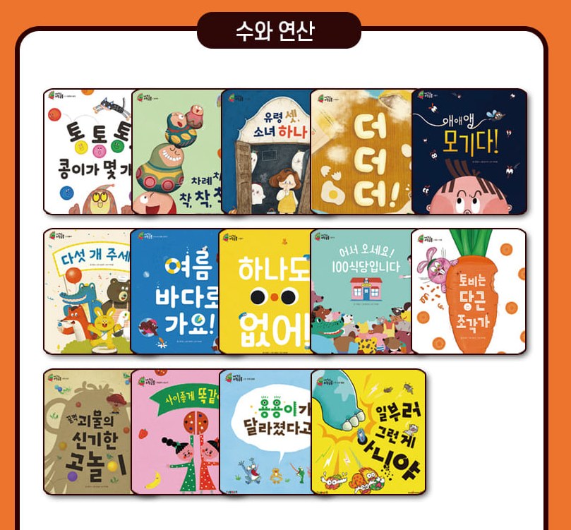 이렇게 5개의 카테고리에 맞는 책들이 골고루 있어서 다양한 수 개념을 재밌는 책을 통해 알아갈 수 있습니다!