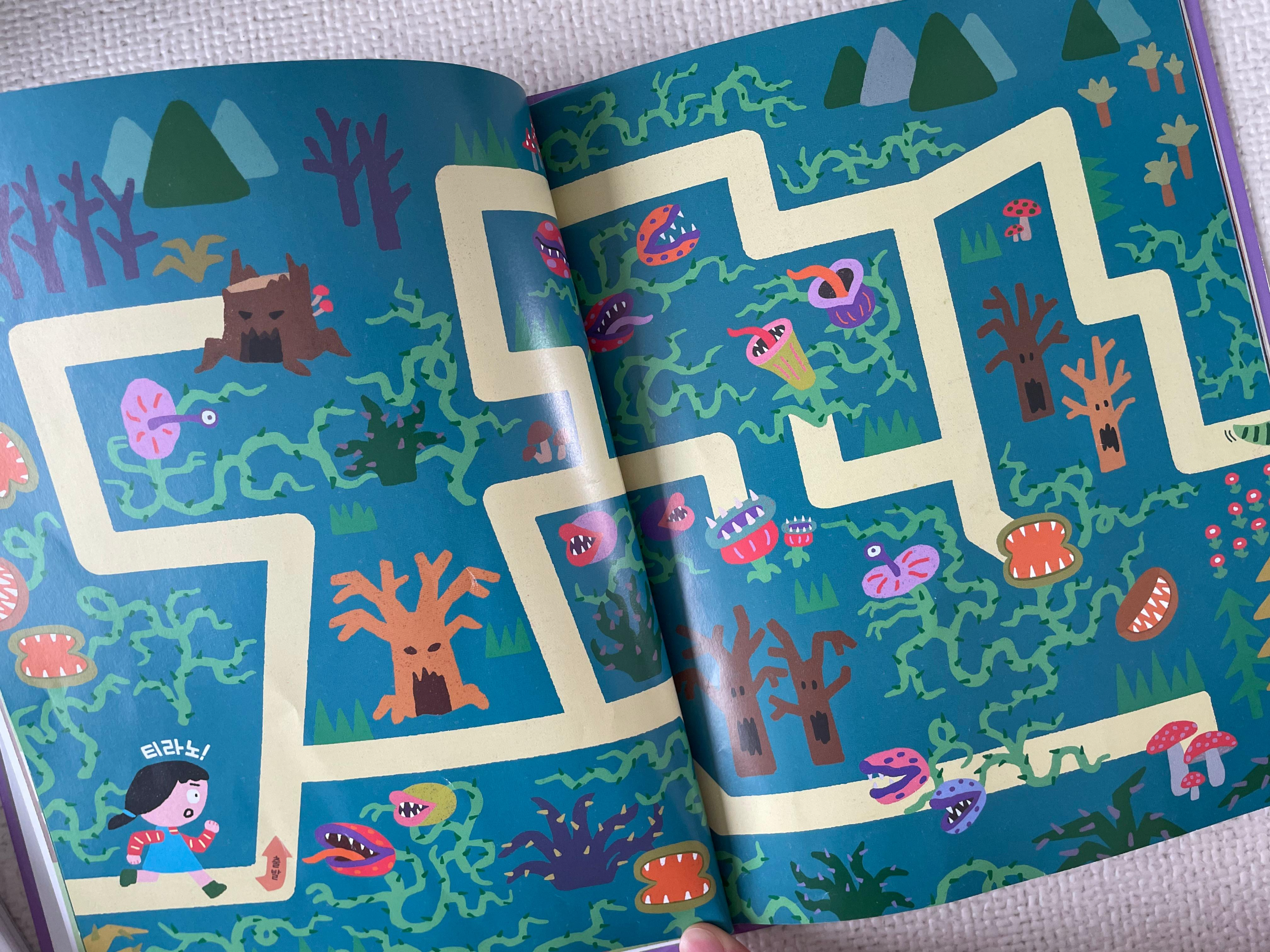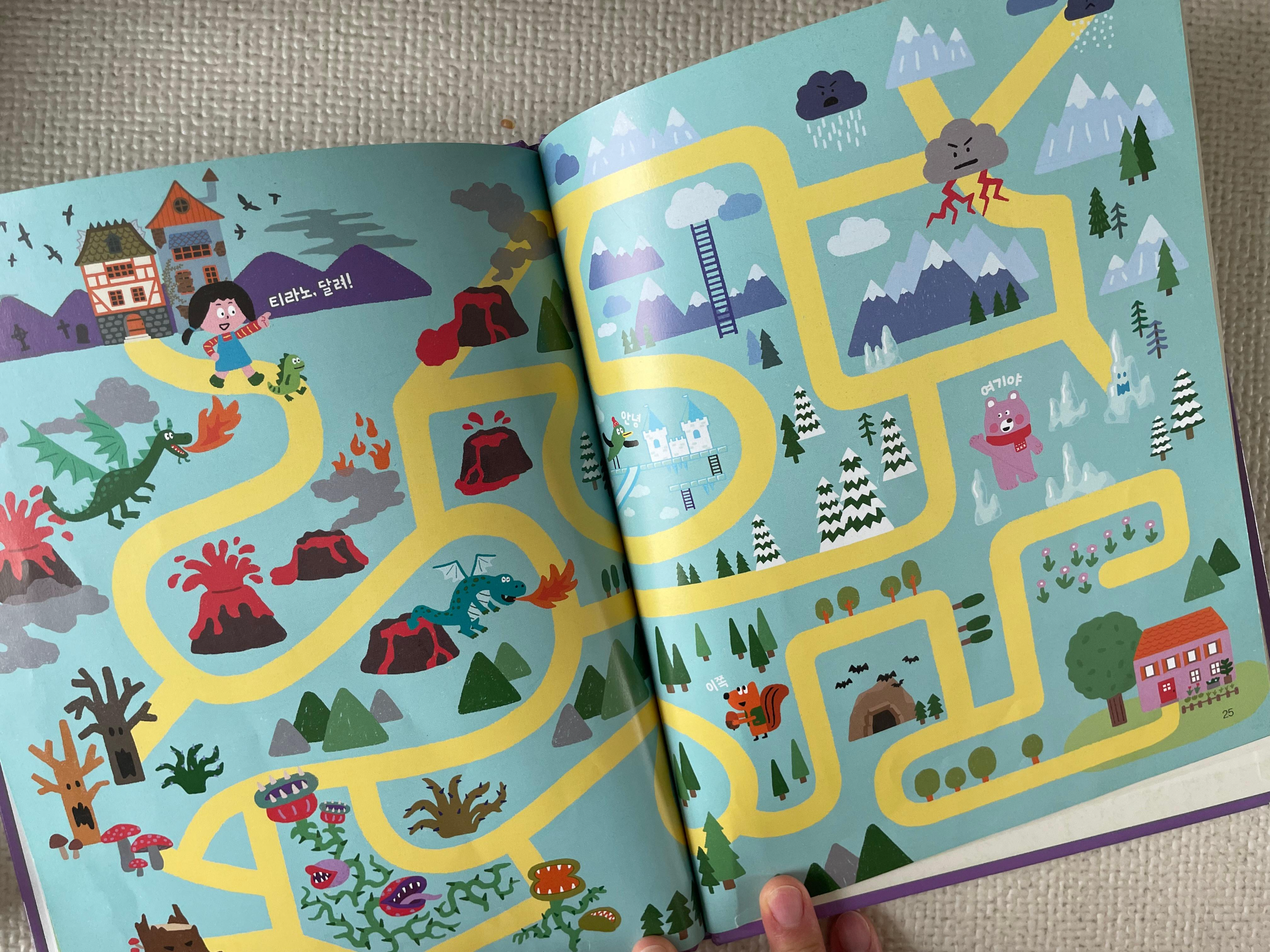 다양한 미로찾기가 나와서 단순히 책을 읽는 것에 끝나지 않고 재밌는 활동을 하면서