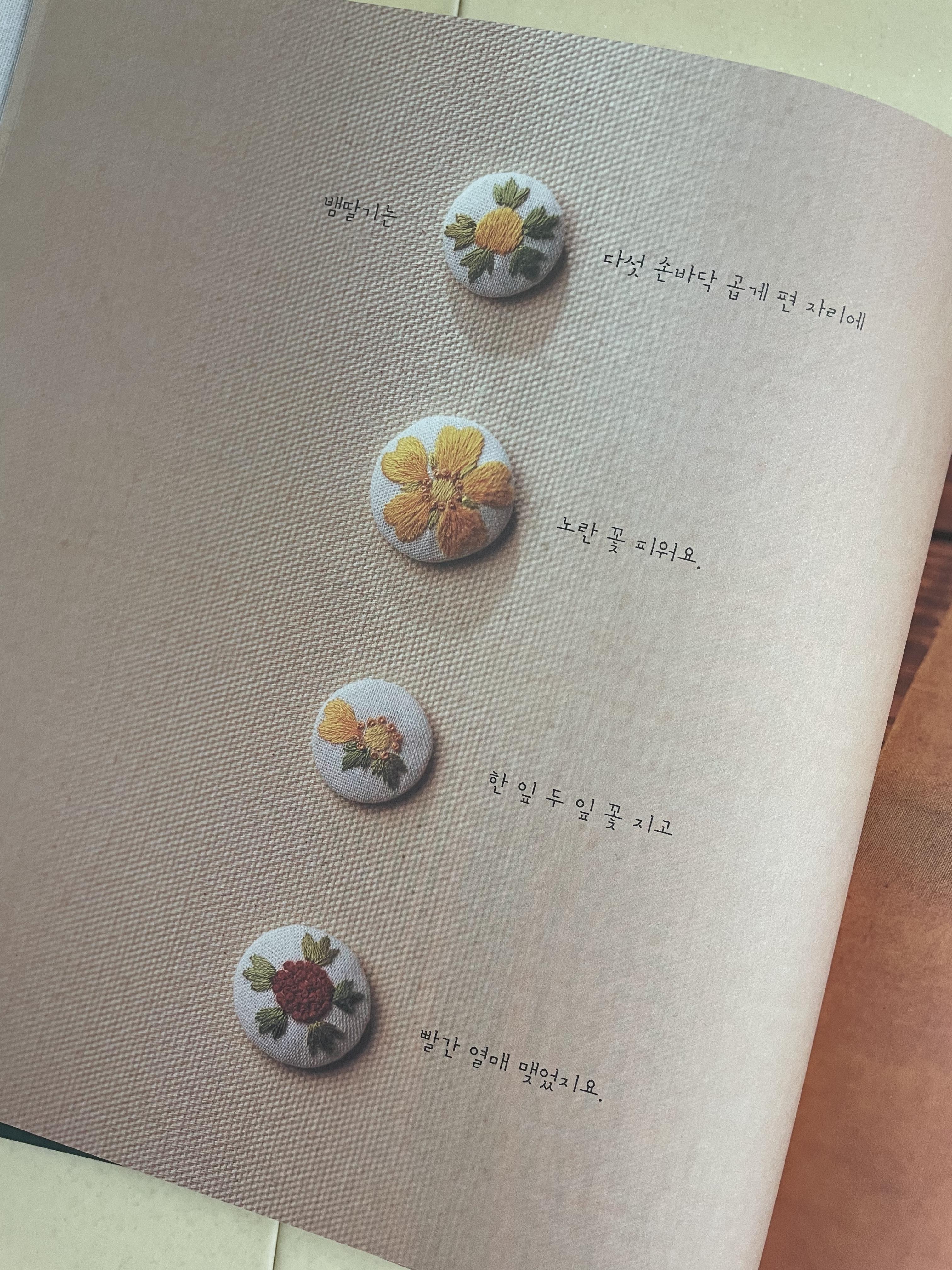 그 외에 다양한 꽃들을 모두 예쁜 자수로 표현했습니다.
