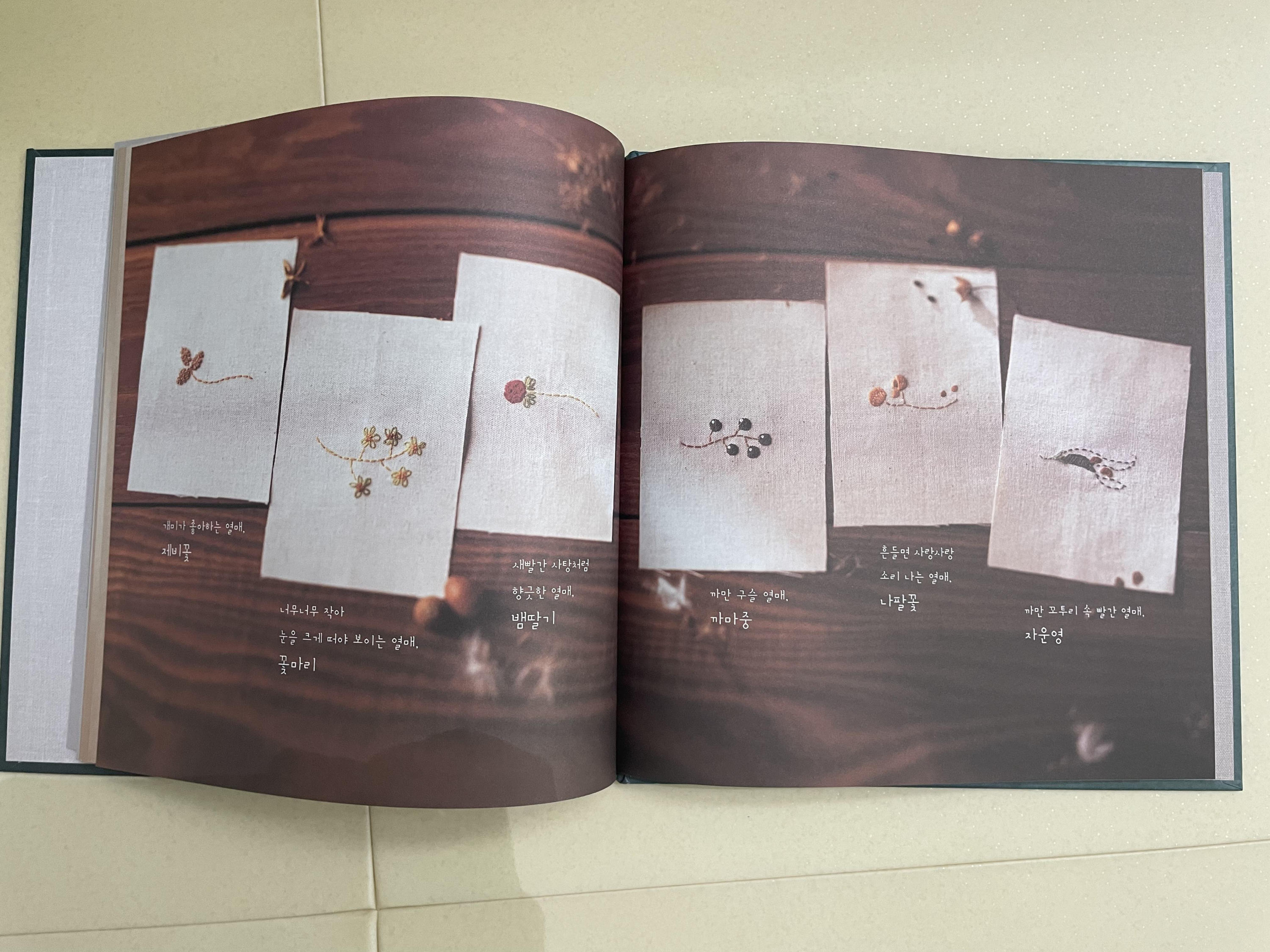 이름모를 들꽃들이 봄에 싹을 틔우고 꽃을 피우고 열매를 맺은 다음 다시 씨앗으로 돌아가는 일련의 과정을 한 땀, 한 땀 정성스러운 자수로 표현을 했어요.
