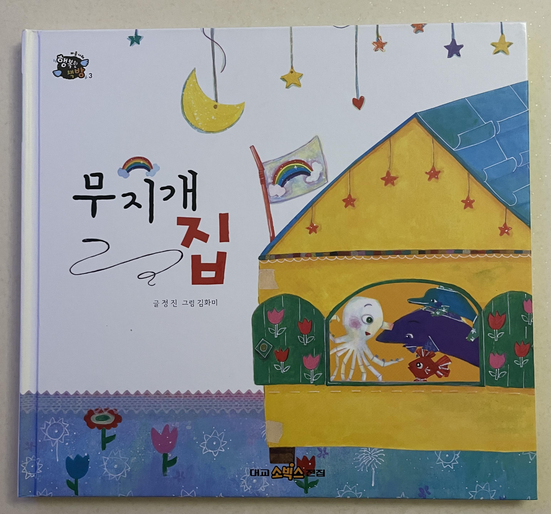 큰별이에게는 알록달록 예쁜 무지개 집이 있습니다. 무지개 집 안에는 아빠가 색종이로 접어 준 예쁜 친구들이 있습니다. 하얀 문어, 빨간 금붕어, 파란 돌고래, 보랏빛 상어, 이렇게 4마리의 친구들이 있습니다. 무지개 집에서는 재채기라고 했다가는 친구들이 휙 날아가 버립니다.
