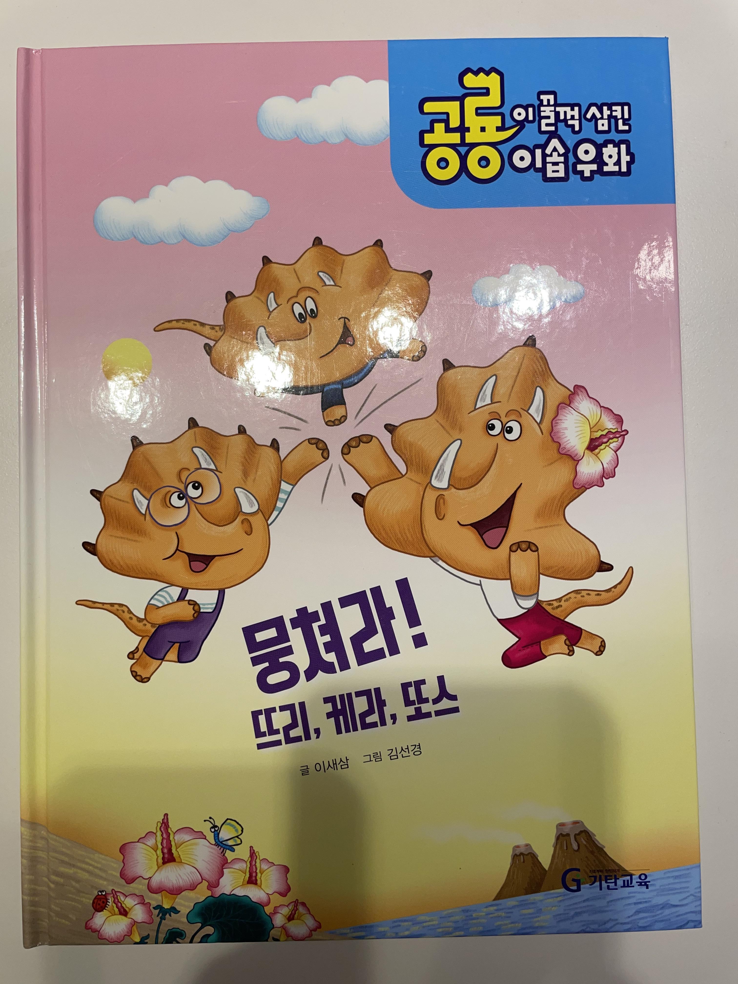 '뭉쳐라! 뜨리, 케라, 또스!'의 원작은 이솝 우화 '사자와 황소 세 마리'입니다. 원작은 이 책 내용과는 다르게 좀 무서운데요, 서로 간에 오해가 쌓인 황소들은 서로를 미워하며 함께 다니지 않게 되고, 결국 사자에게 모두 잡아먹히고 마는 슬픈 이야기입니다. 친구 사이의 믿음이 얼마나 중요한지 강렬하게 알려주는 내용인 것 같습니다.