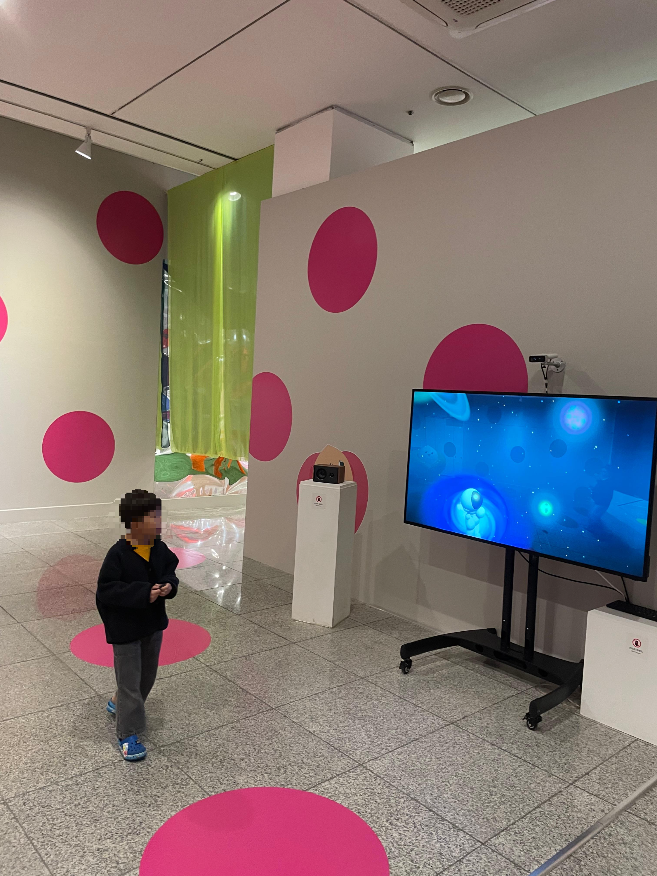모니터 앞에 서면 카메라가 사람을 인식해서 화면에 우주인으로 나타나요~