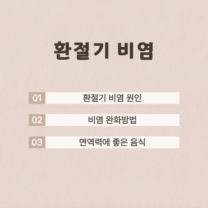 음식과 생활 습관을 잘 관리하면 환절기에도 비염 증상을 줄이는 데 도움이 될 거예요! 😊